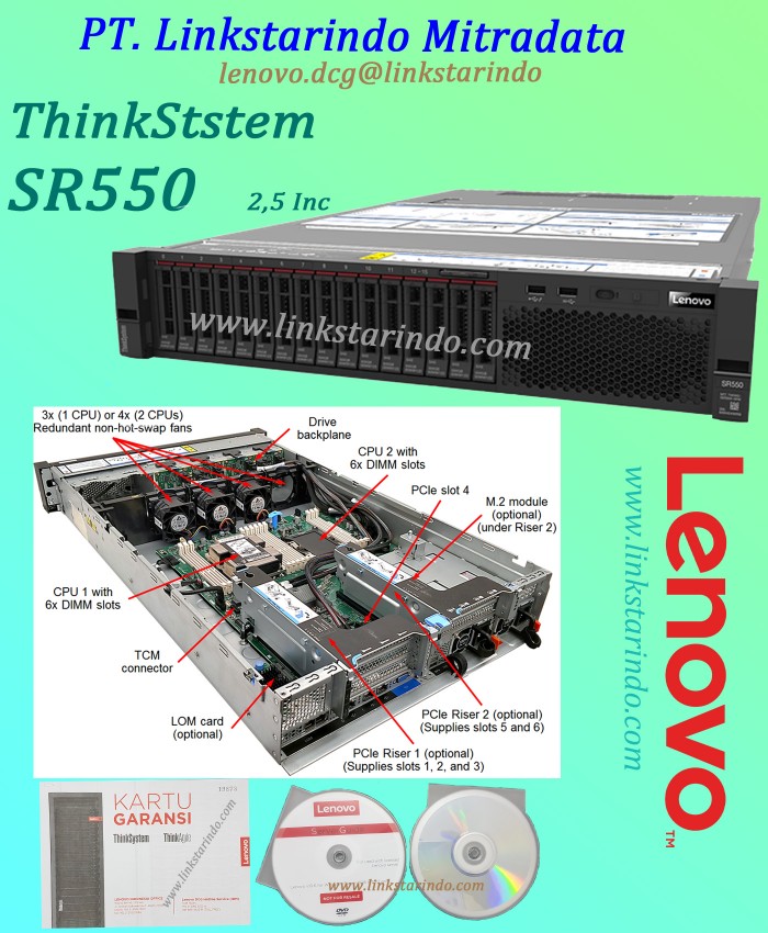 7X04A09KSG - ThinkSystem SR550 - Gen 2, Dual Intel Xeon Silver 4214 12C, RAM 256 GB, HDD 40 TB SAS, SSD 960 GB SATA, Windows Server 2019, Windows CAL
