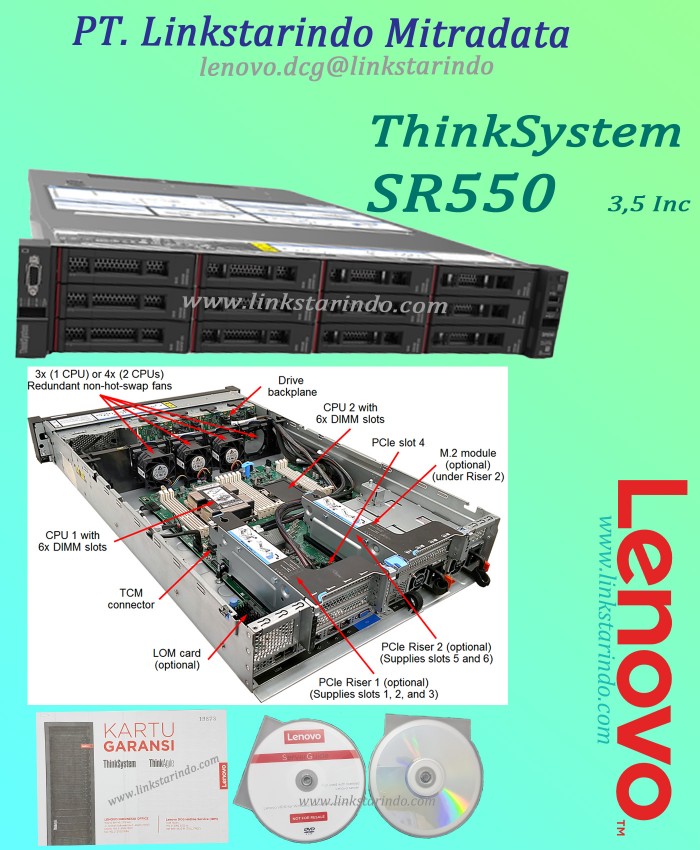 7X04A09KSG - ThinkSystem SR550 - Gen 2, Dual Intel Xeon Silver 4214 12C, RAM 256 GB, HDD 40 TB SAS, SSD 960 GB SATA, Windows Server 2019, Windows CAL